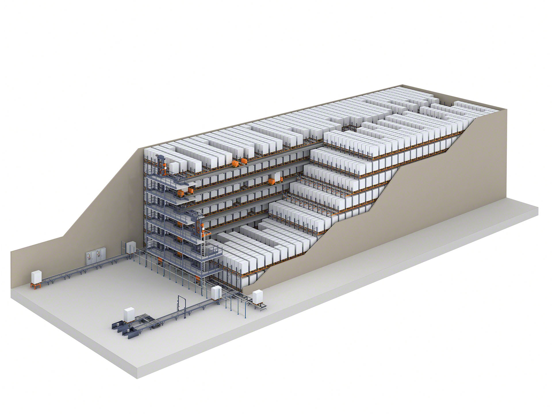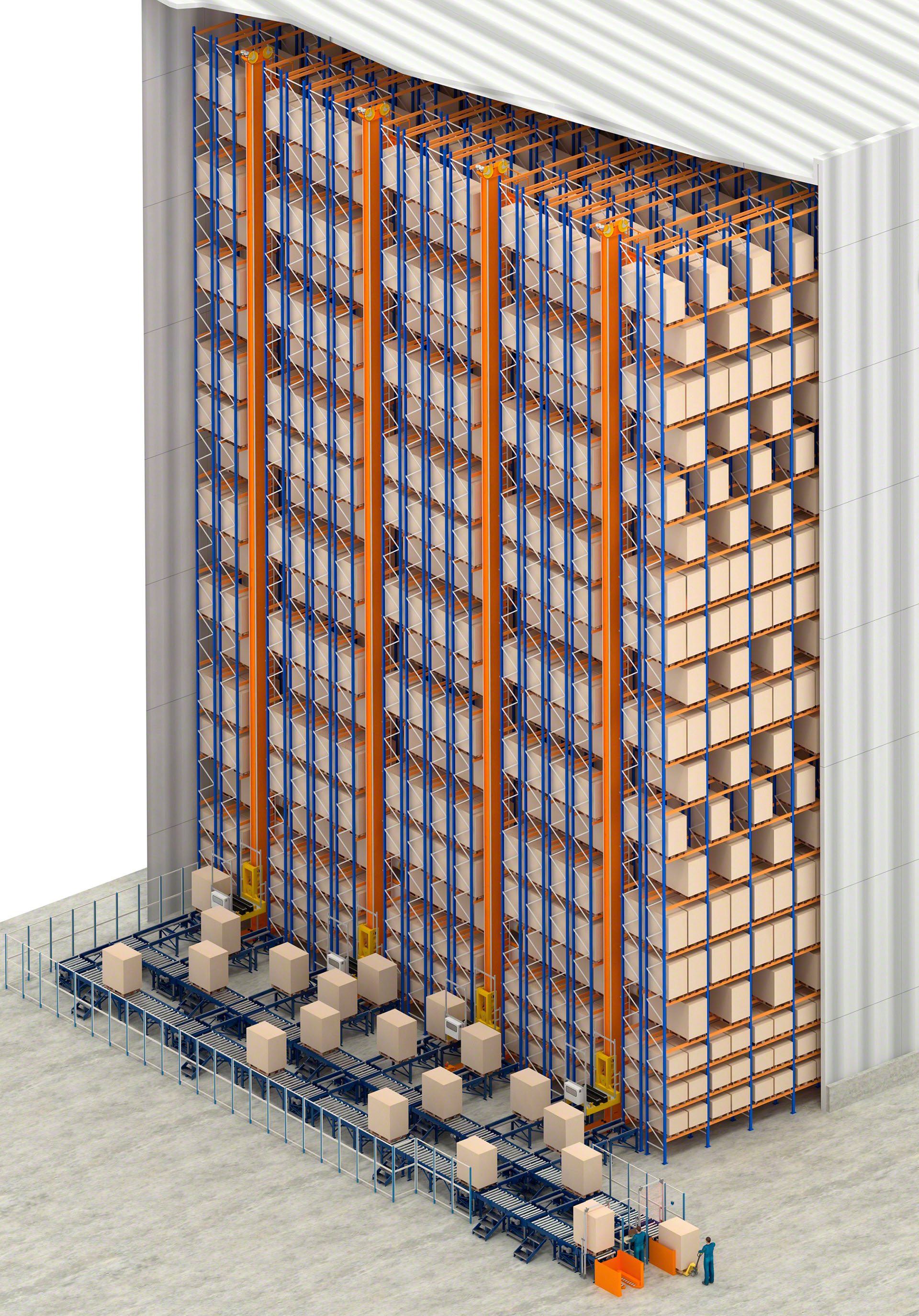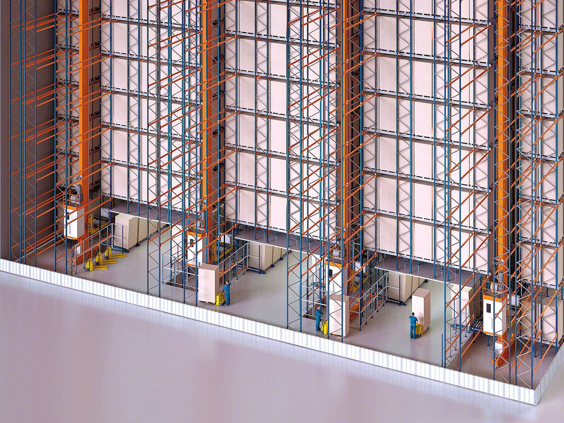 - Economie maximă de spațiu în sisteme compacte cu canale de depozitare până la 40 de metri adâncime și rafturi de peste 40 de metri înălțime.