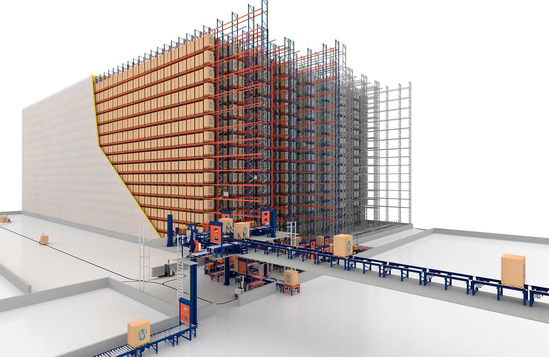 - Înălțime mare: configurează o soluție pe mai multe niveluri care face posibilă ridicarea paleților până la înălțimea de 40 m.