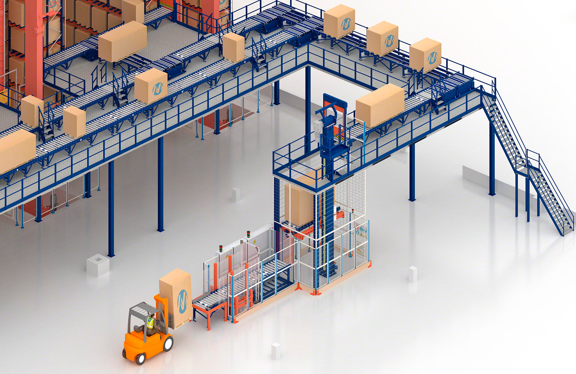 Elevatoarele de la Mecalux sunt sisteme de mare robustețe care sunt ușor de integrat atât pentru depozite automate cât și pentru cele convenționale. Echipate cu motor electric și cu un transportor pentru transferul precis al mărfurilor, implementarea acestora asigură continuitatea fluxului intern de paleți și mărește productivitatea prin reducerea timpilor de transport.