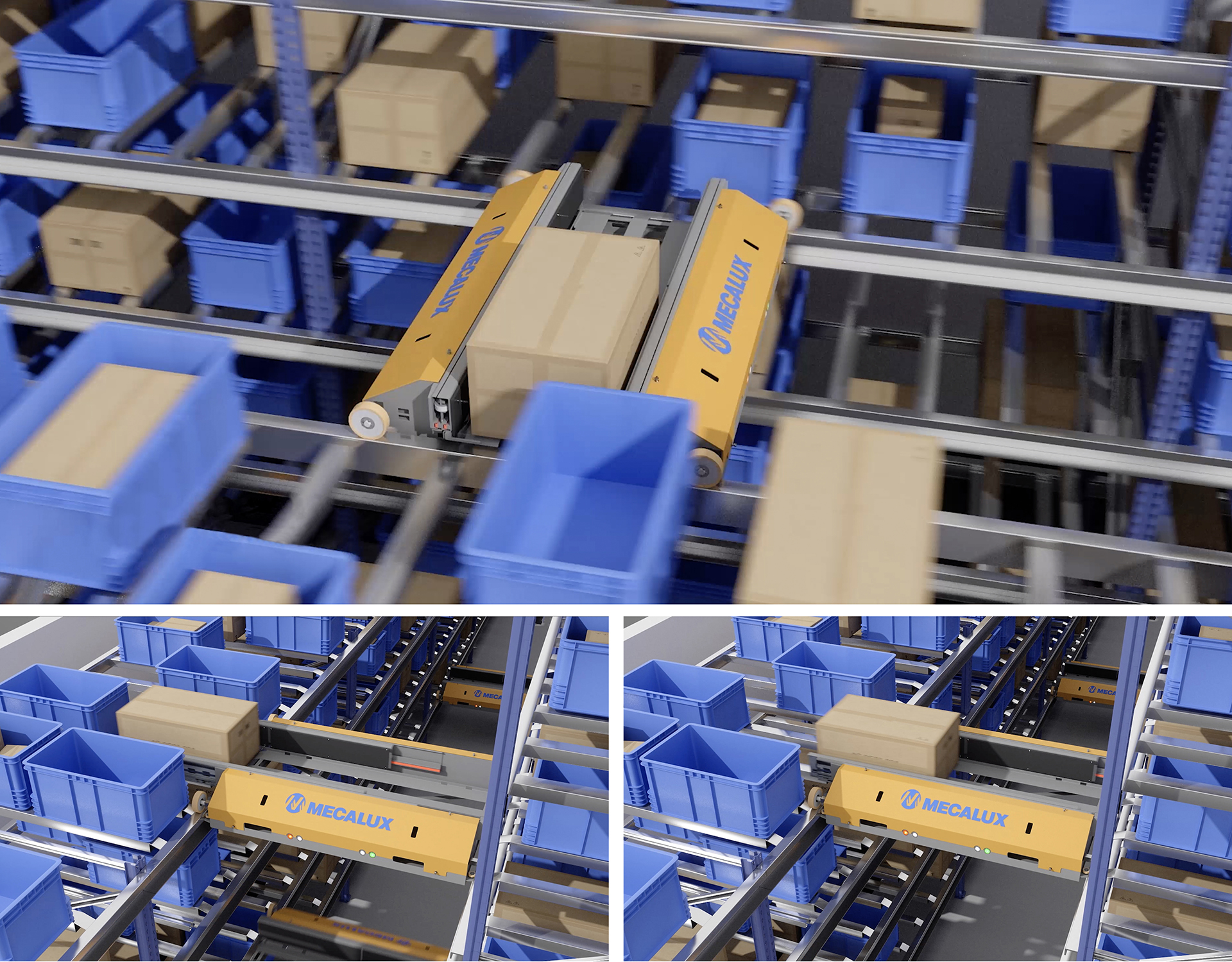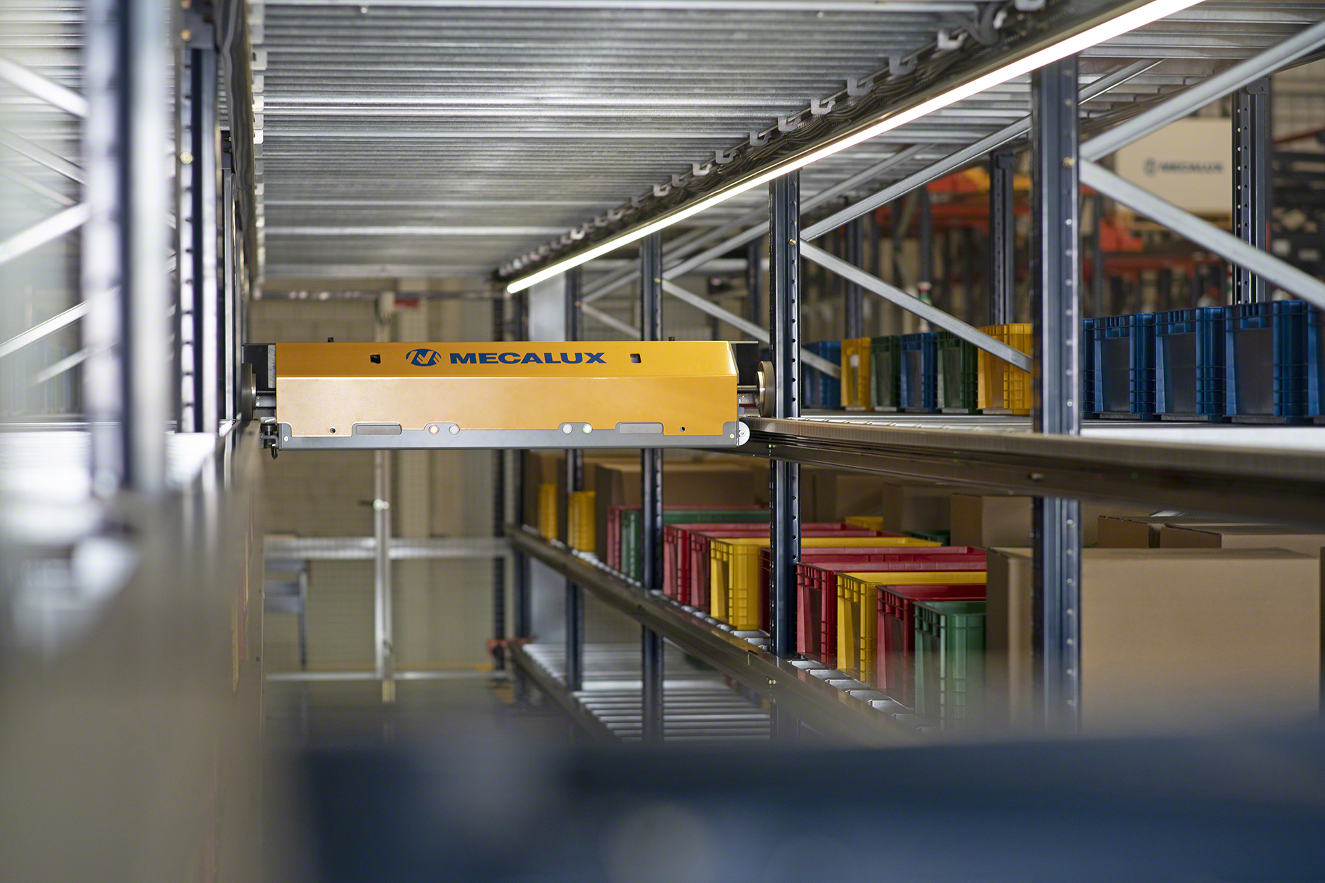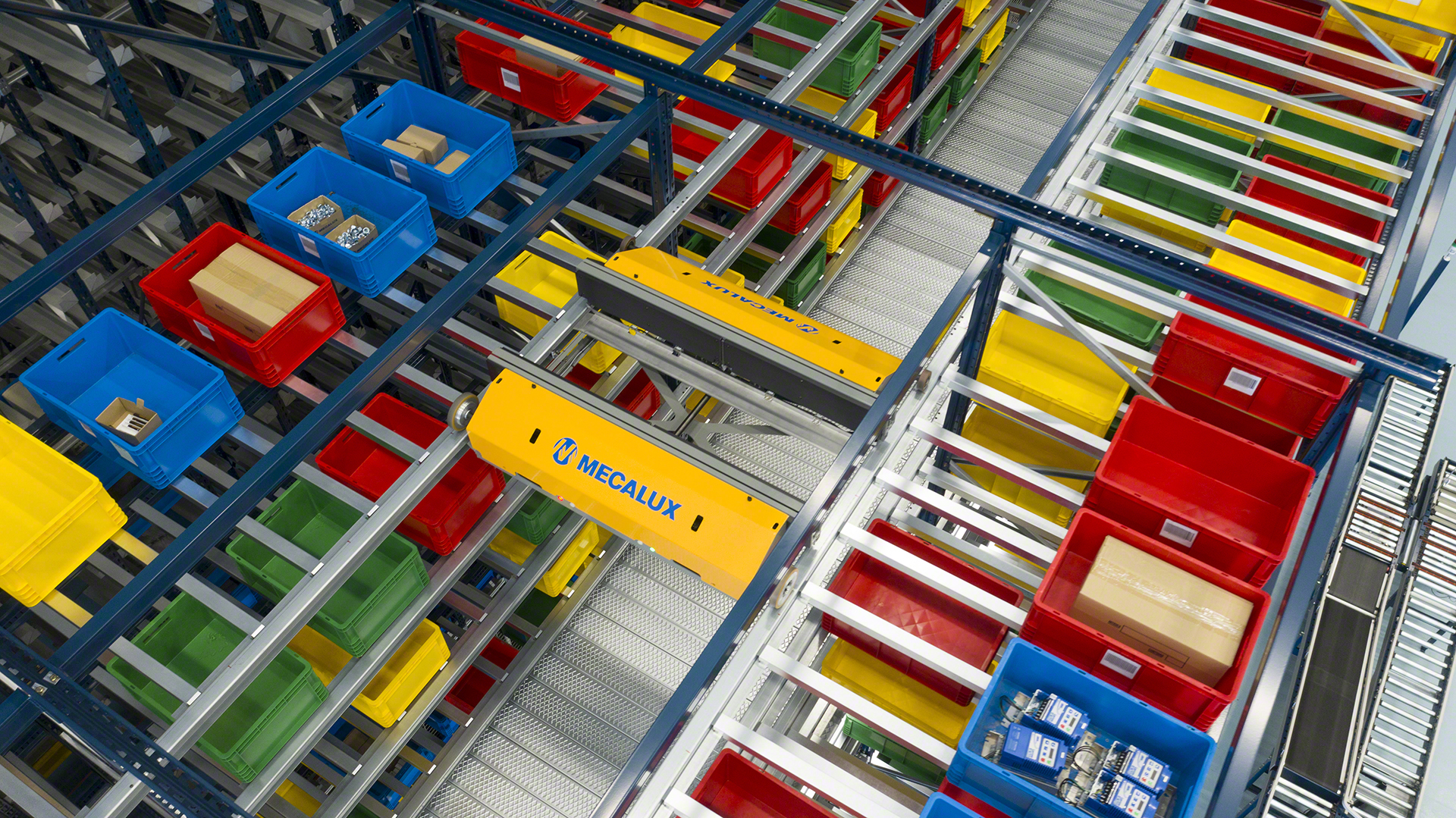 - Sistem de depozitare complet automat pentru cutii, containere și piese mici.