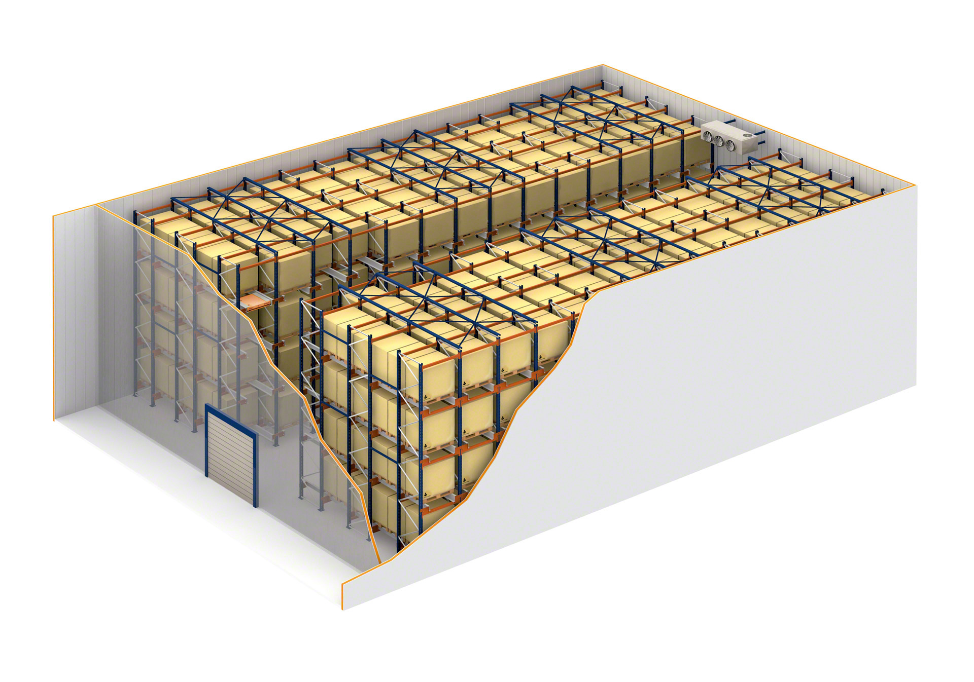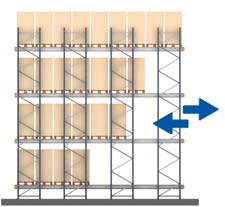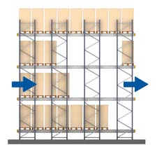 - Număr mai mare de paleți în adâncime: canalele de depozitare pot depăși 40 m. În înălțime, limita este stabilită de mijloacele de manipulare utilizate.