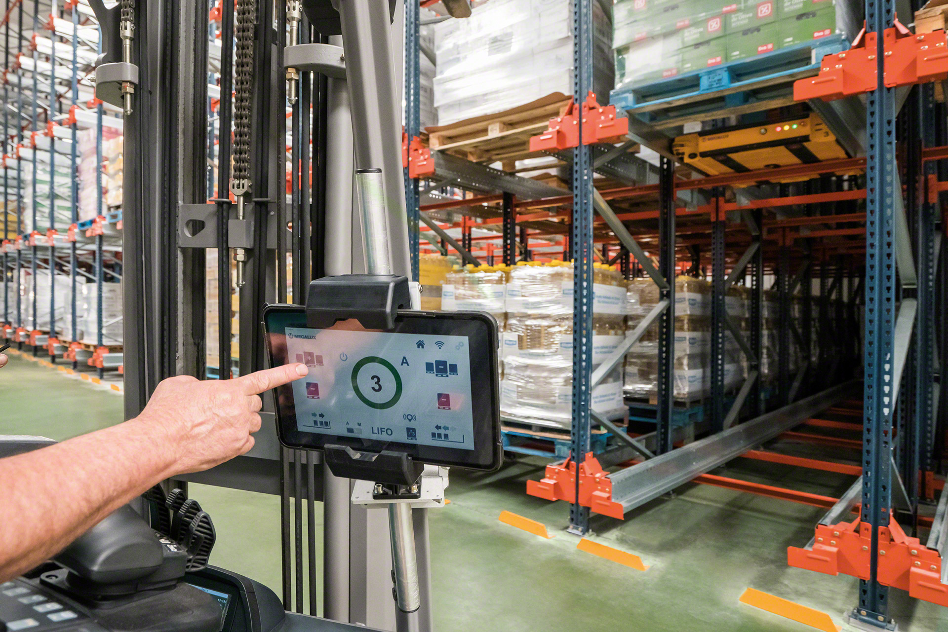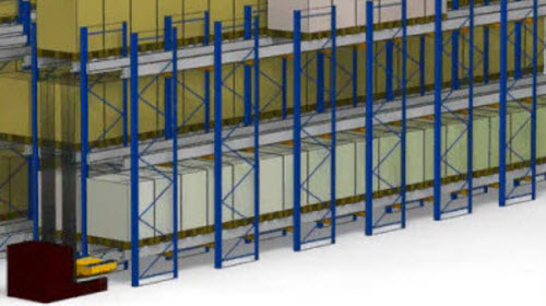 Răspunsul inteligent a fost Pallet Shuttle: structura de rafturi este adaptată astfel încât un cărucior cu motor electric să se poată deplasa pe șine în interiorul căilor de depozitare, urmând comenzile date de un operator de la o tabletă cu conexiune wi-fi.