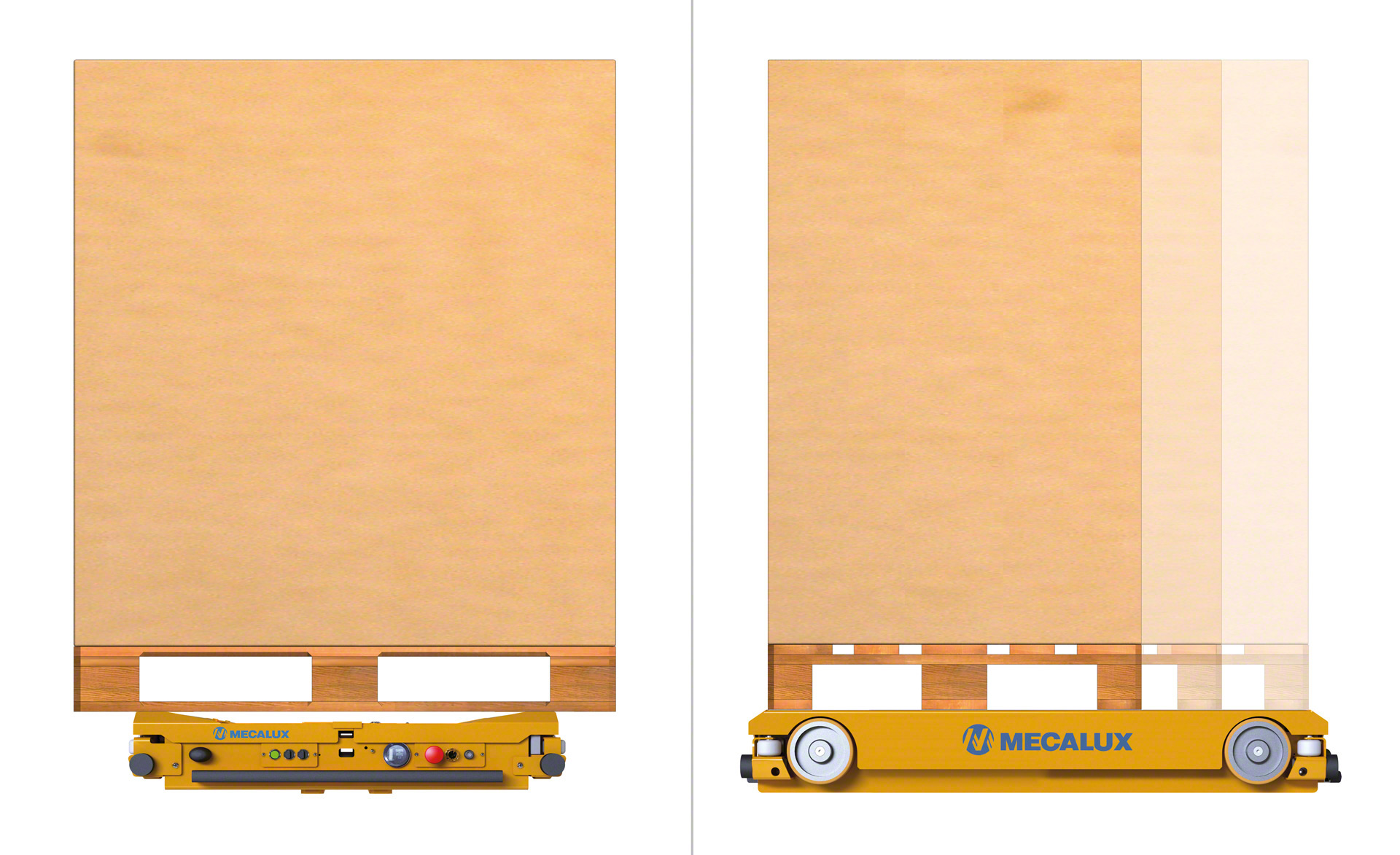 - Căruciorul încorporează senzori care îi permit să detecteze și să manipuleze diferite tipuri de paleți.