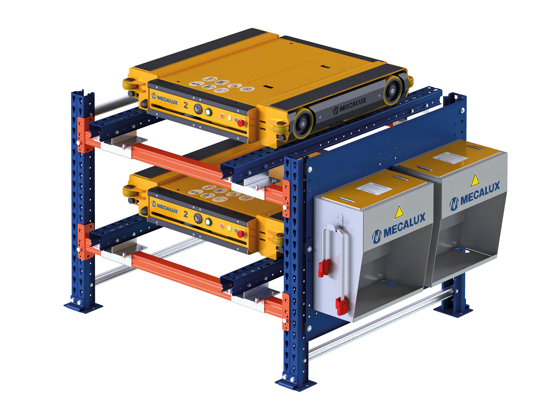 Mecalux proiectează și produce toate componentele sistemului de depozitare compact Pallet Shuttle, atât structura specifică pentru optimizarea deplasării cărucioarelor, cât și cărucioarele în sine.
