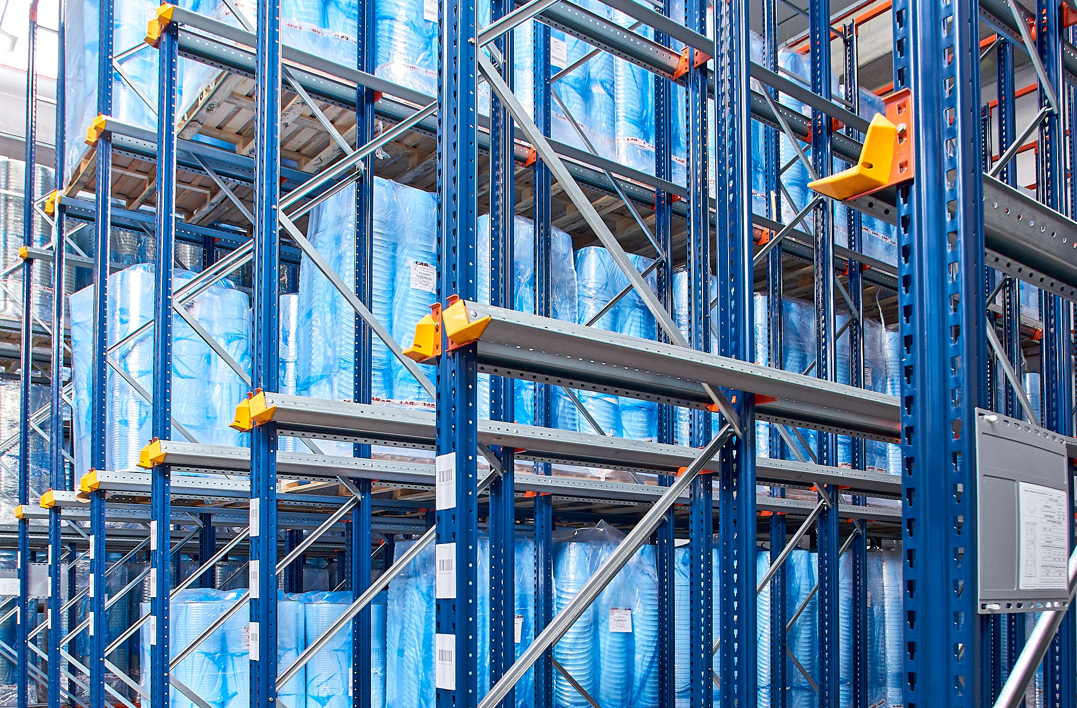 Rezistența mare a materialelor care alcătuiesc acest tip de rafturi permite depozitarea paleților foarte încărcați.
