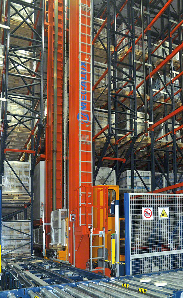 Compania lucrează cu paleți de diferite dimensiuni și calități. Din acest motiv, sunt folosiți paleți sclav de 1.000 x 1.220 mm, pentru a asigura rezistența și stabilitatea sarcinii atât pe circuitele transportoare, cât și în interiorul depozitului. Stațiile de intrare sunt echipate cu un distribuitor de paleți gol.